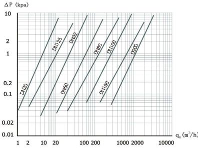 ΔP ——介質為干空氣時流量計的壓力損失(KPa),其特性曲線見下圖