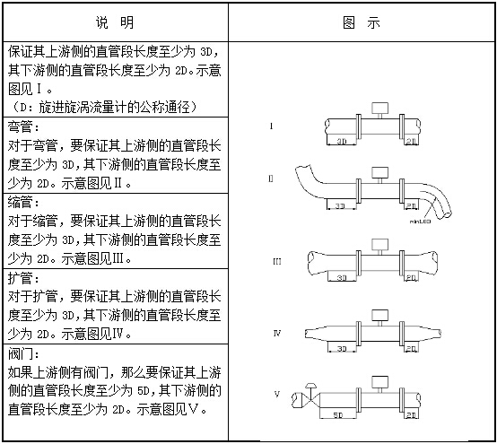 根據旋進旋渦流量計的工作原理和流量計對上、下游直管段要求,對各種上游阻力件,