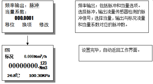 當量輸出:與標況體積流量對應的脈沖輸出端子,輸出頻率由脈沖當量系數決定;